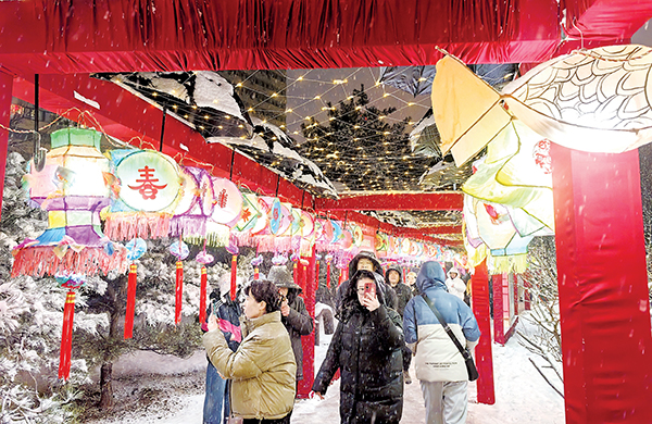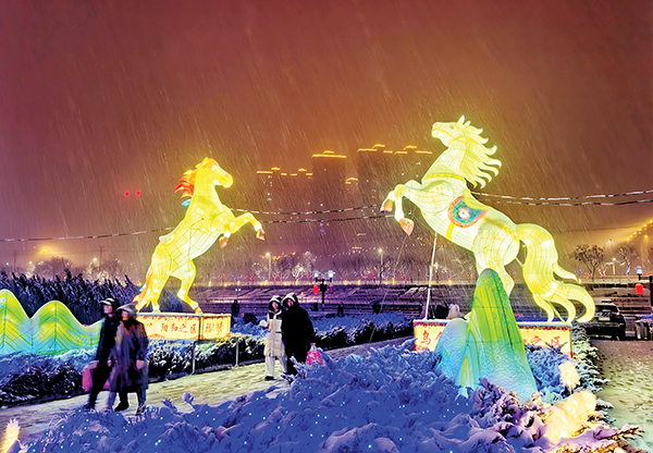 3月1日,一场春雪为2026桃河灯会增色添彩。市民纷纷走出家门,漫步桃河灯会,一步一景,享受雪中赏灯的乐趣。