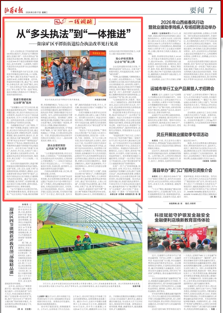 近日,《全国社会工作高质量发展100例》出版发行,阳泉矿区平潭街街道《以党建引领“一支队伍管执法”推动基层执法强治理、增动能、惠民生》从全国3000多个基层治理案例中脱颖而出,成为我省唯一入选案例,为新时代基层综合执法改革与社会治理提供了鲜活样本。